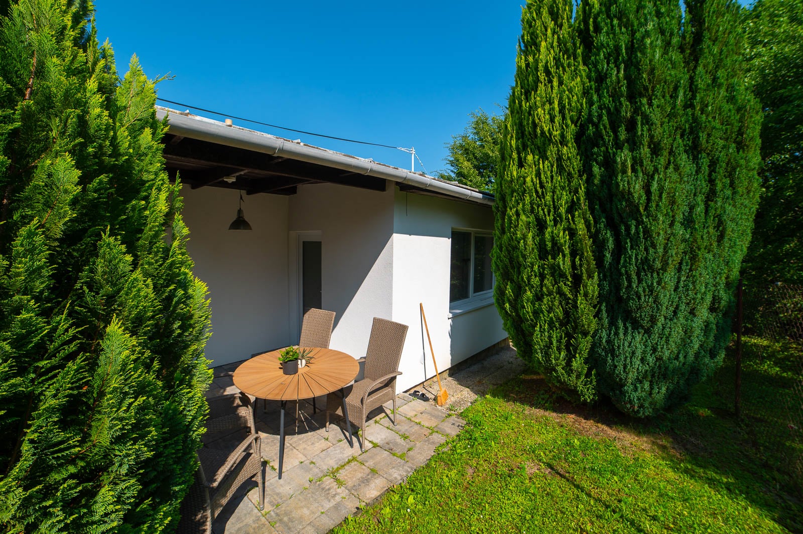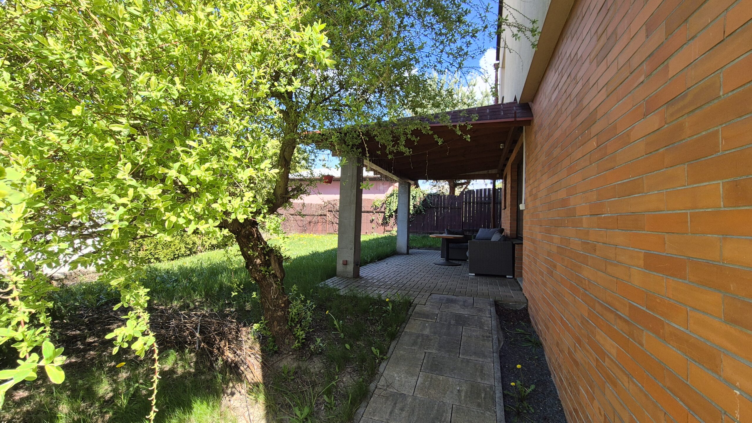 Menší zahrádka za domem i před každým domem vysloveně vybízí k posezení s přáteli a ke grilovacím večerům.